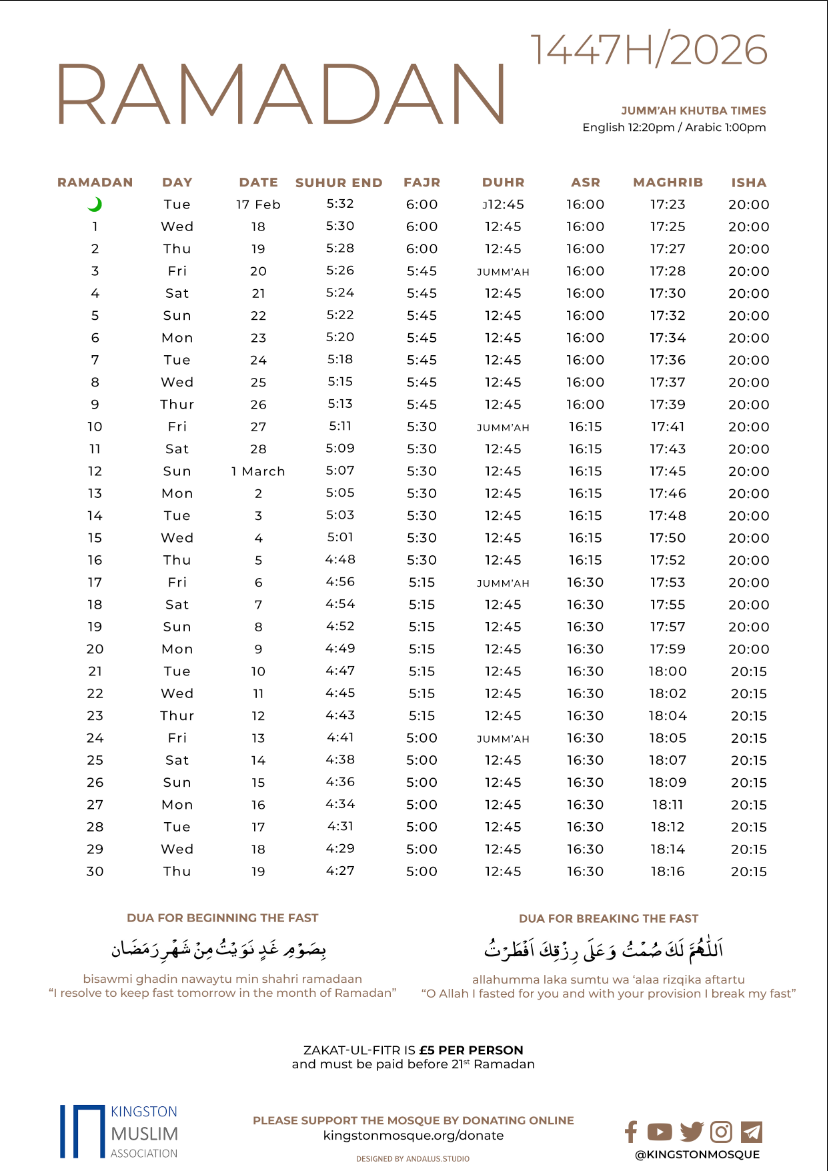 Download the KMA Ramadan 2026 Timetable!