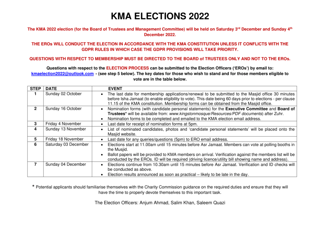 ***UPDATED*** Display Timeline For The KMA Elections 2022 September 15, 2022 KMA KMA News TO DOWNLOAD A PDF VERSION, CLICK THIS LINK